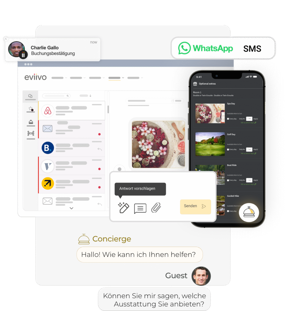 - eviivo Concierge – ein KI-gestützter digitaler Concierge auf Ihrer Website, der Gästeanfragen jederzeit sofort beantwortet