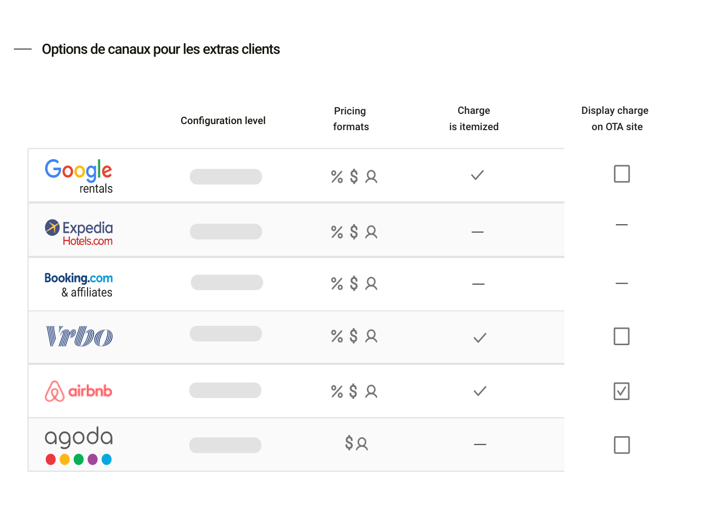 Cela inclut toutes les principales OTA, GDS, sites régionaux et plateformes de métarecherche, notamment Booking.com, Airbnb, Vrbo, Expedia, Agoda, Amadeus, Google VR et Google Hotel Ads, Mr & Mrs Smith, et bien d’autres encore…