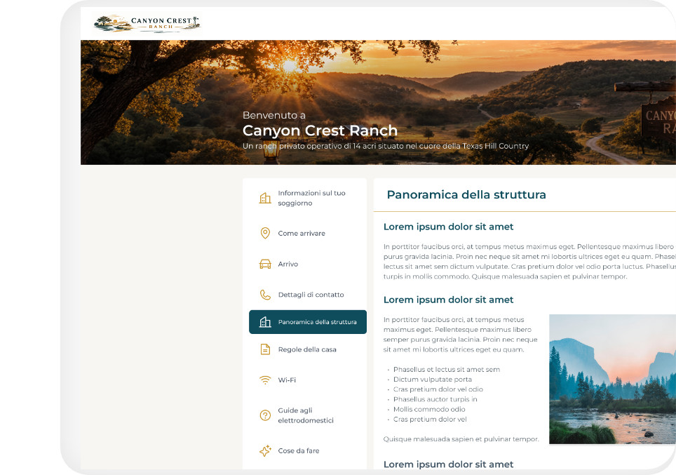 Allo stesso tempo, guide digitali di benvenuto e comunicazioni automatiche assicurano che gli ospiti ricevano le informazioni giuste in ogni fase del soggiorno, prima ancora di dover chiedere.