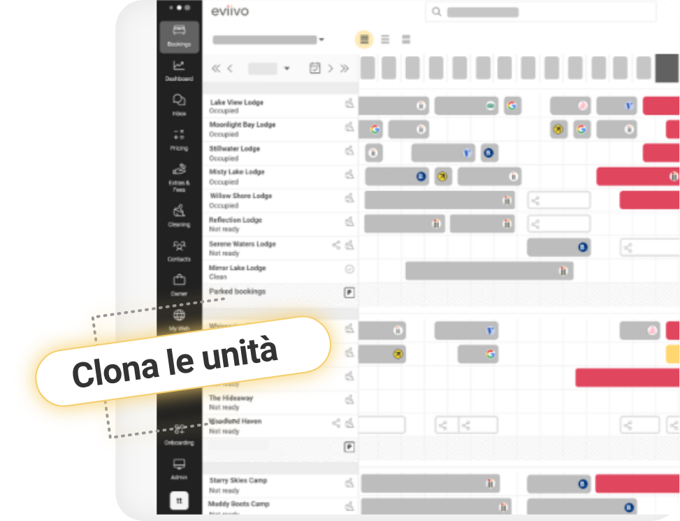 La piattaforma multi-tutto di eviivo sostituisce questa complessità con una soluzione unificata, integrando operazioni, distribuzione, esperienza degli ospiti e controllo finanziario. Con pricing basato su IA, automazione e strumenti di prenotazione diretta che lavorano insieme, puoi ottimizzare i ricavi riducendo i costi operativi.