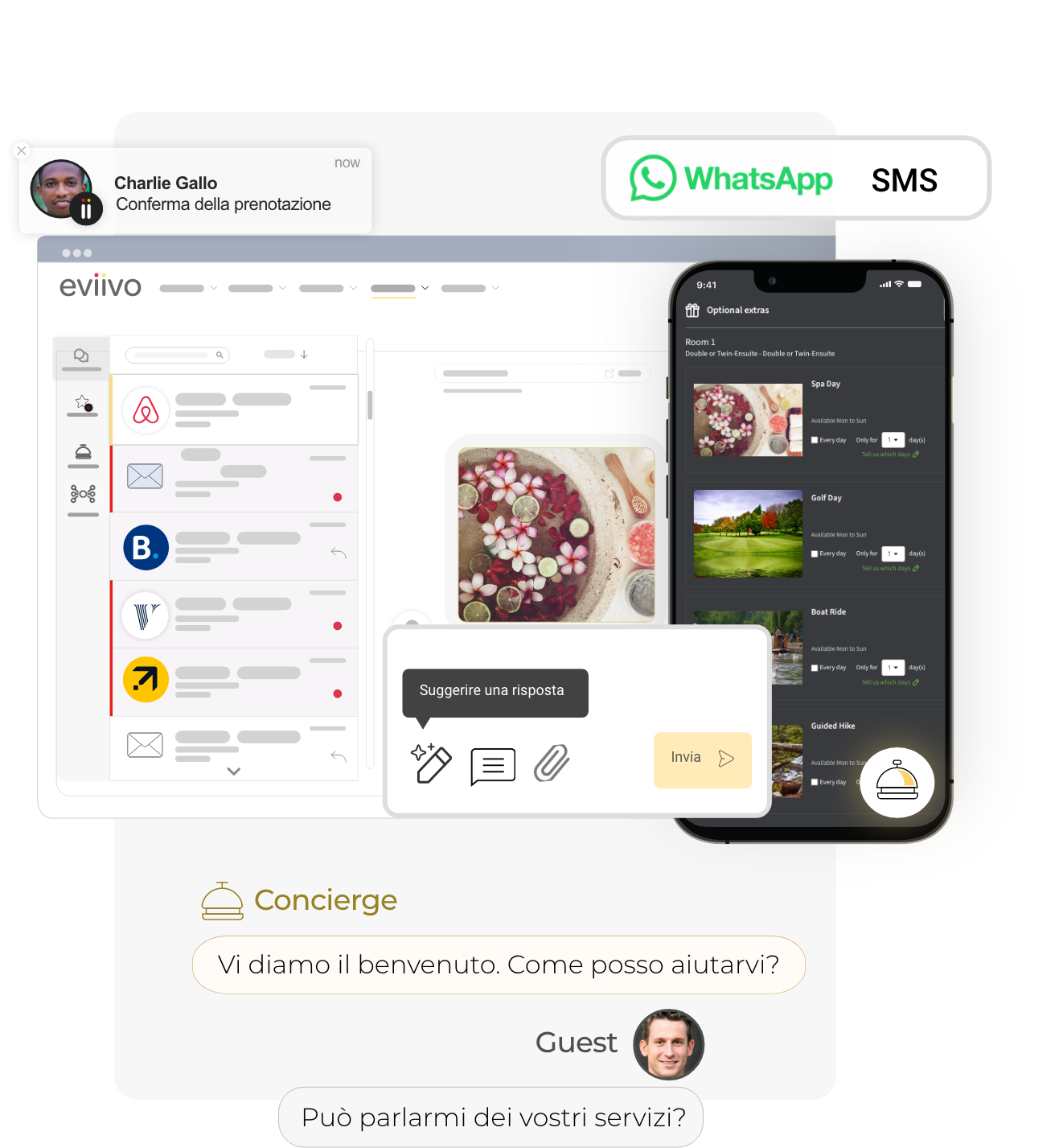 - eviivo Concierge, un concierge digitale basato sull’IA sul tuo sito web che risponde istantaneamente alle domande degli ospiti, 24/7