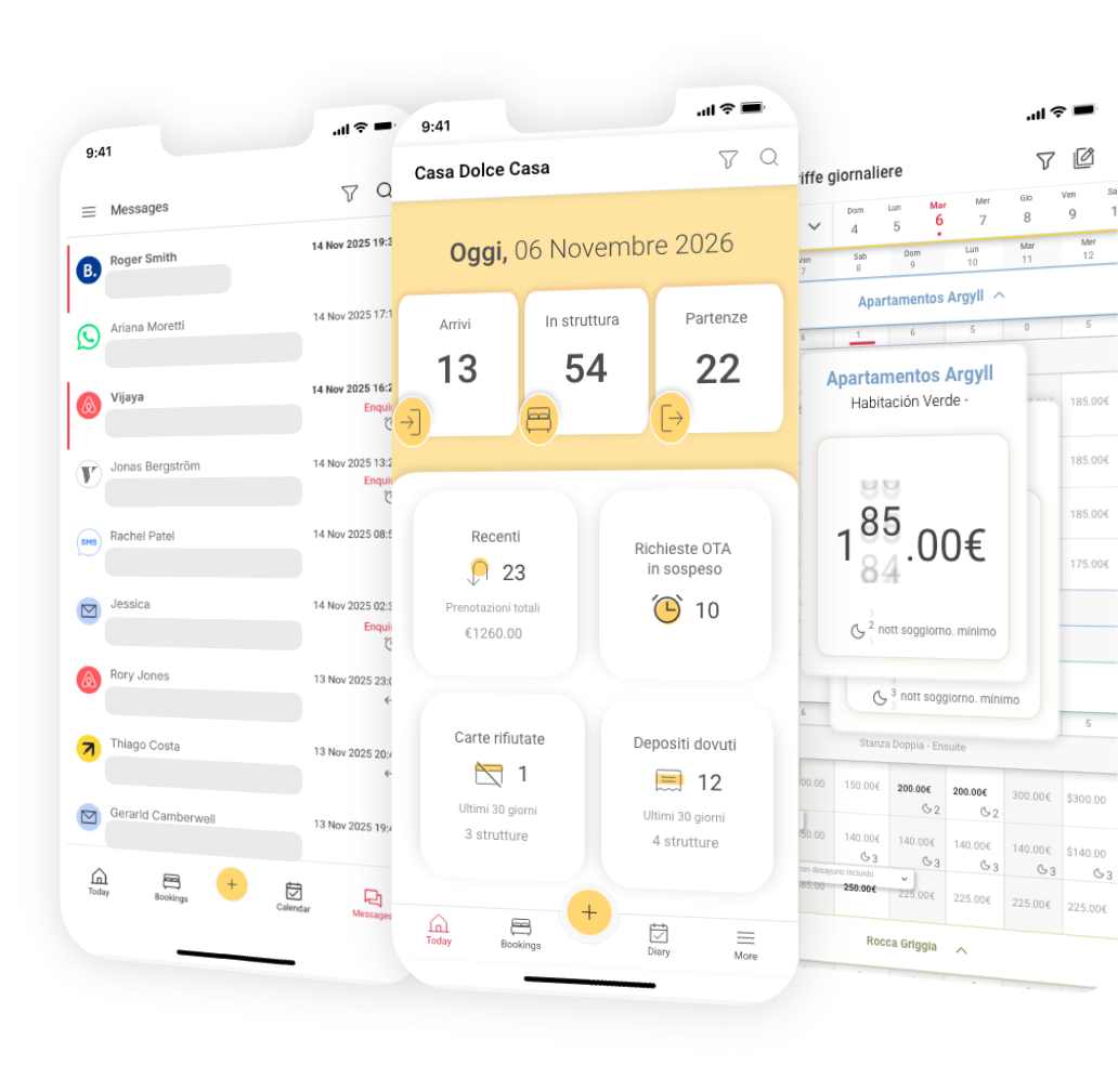 Controlla disponibilità, arrivi, partenze, prenotazioni in arrivo e richieste speciali in qualsiasi momento.