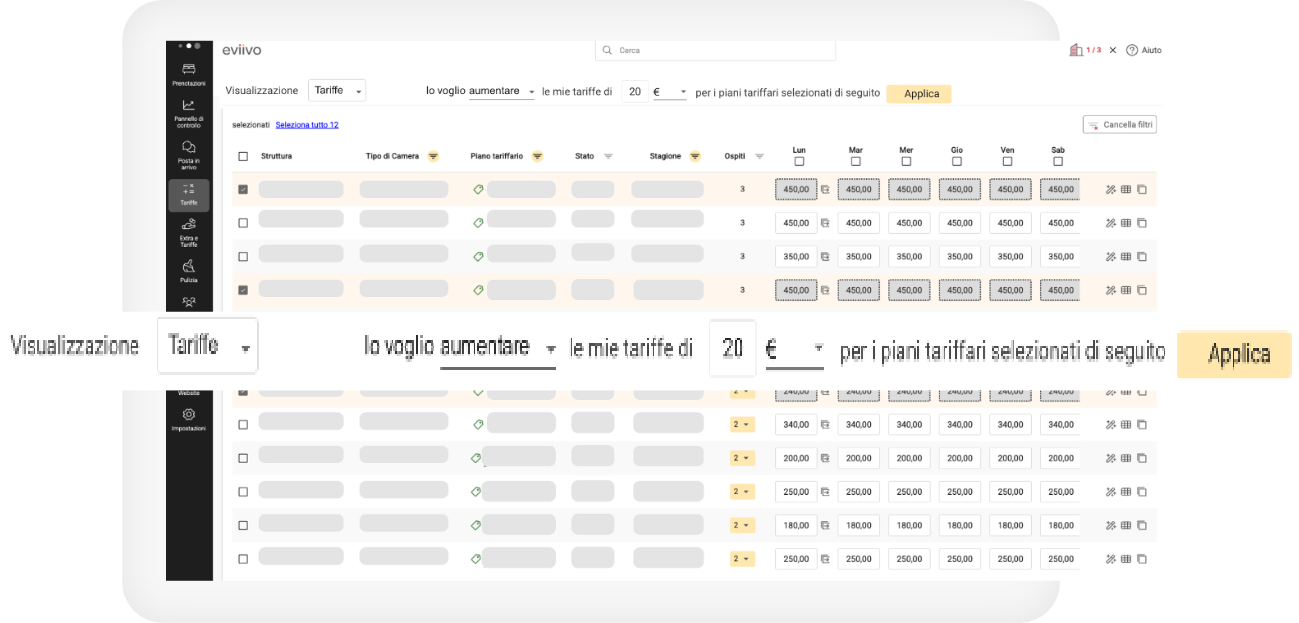 - Adegua automaticamente le tariffe per soggiorni più lunghi