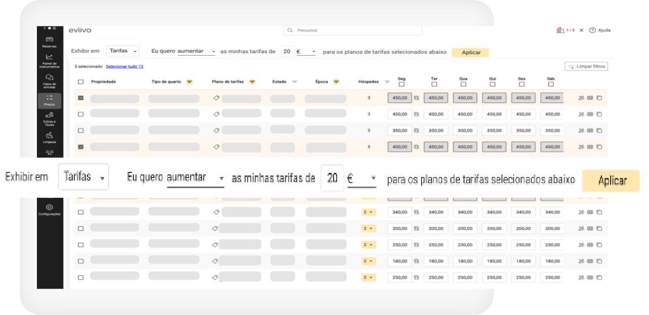 Faça a gestão das tarifas diárias com facilidade.